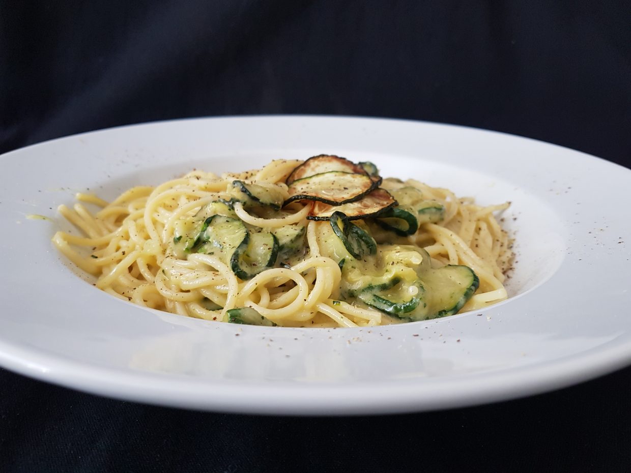 Spaghetti alla Nerano von 1952 besteht nur aus drei schlichten Zutaten, eine davon die Spaghetti – das Wichtigste die Zucchini. Und das Gericht schmeckt einfach ausgezeichnet! Heute erstmals ausprobiert!